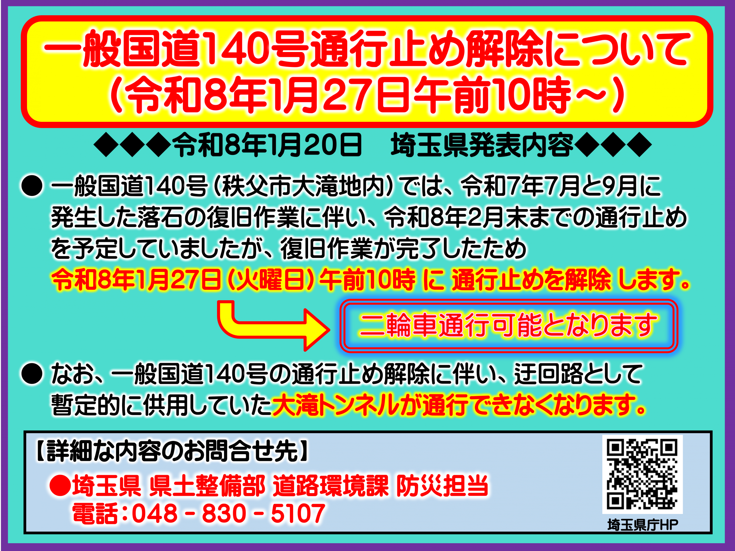 ■■■■■■ 【一般国道140号の通行止め解除について】■■■■■■■■■■■■■■■■■■■■■■■■■■■■■■■■■■■■■■■■■■■